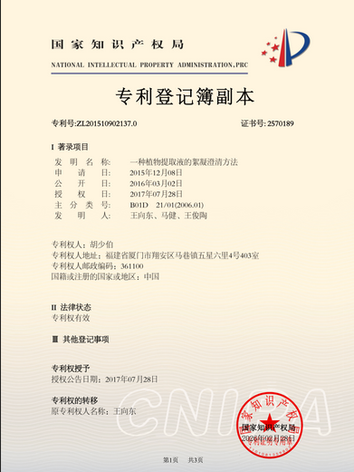 We possess the patent of a purification technology for plant-based ingredients, focusing on improving: